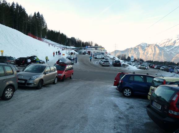 Von der Ausfahrt Innsbruck Süd (Brennerautobahn) sind es nur 3 km bis zur Muttereralmbahn. Zur Nockspitzbahn ist es auch nur unwesentlich weiter und es stehen fast immer ausreichend kostenfreie Parkplätze zur Verfügung. Von den etwas tiefer gelegenen Parkplätzen in Mutters führen sogar Förderbänder zur Talstation. Sehr angenehm!