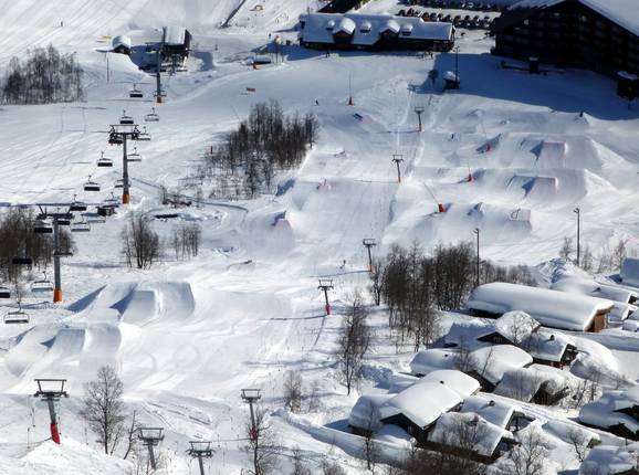 Der Terrain Park ersteckt sich hauptsächlich entlang des Schleppliftes Landsbytrekket und bietet zahlreiche Obstacles und Sprünge. Der zweite Teil des Terrain Parks, der Boardercross, befindet sich am Schlepplift Helgauntrekket.