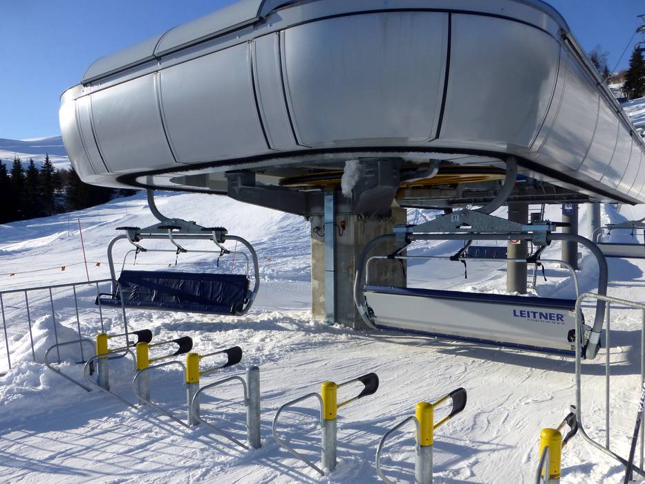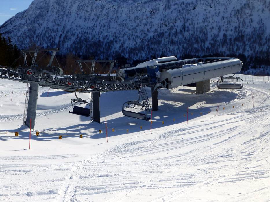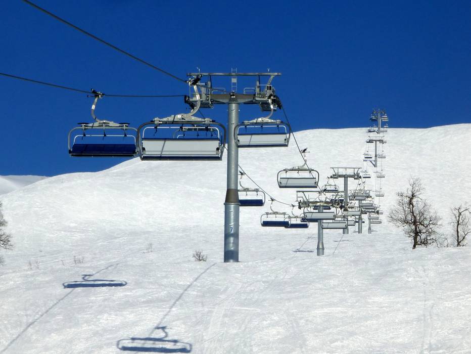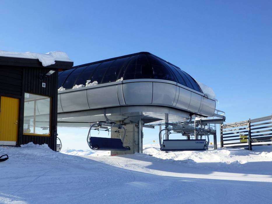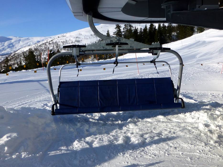 Die 6er-Sesselbahn Storhaugsekspressen ist mit blauen Wetterschutzhauben ausgestattet.