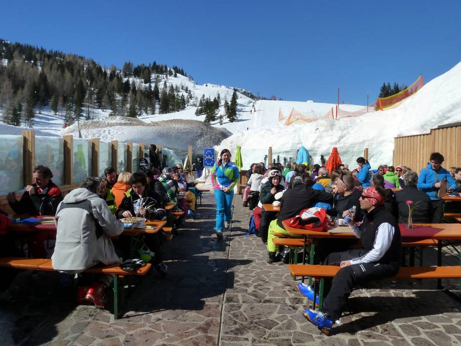 Typische italienische Skihütte mit hervorragender Pizza, Pasta und italienischen Gerichten. Bei schönem Wetter lockt die Sonnenterrasse.
