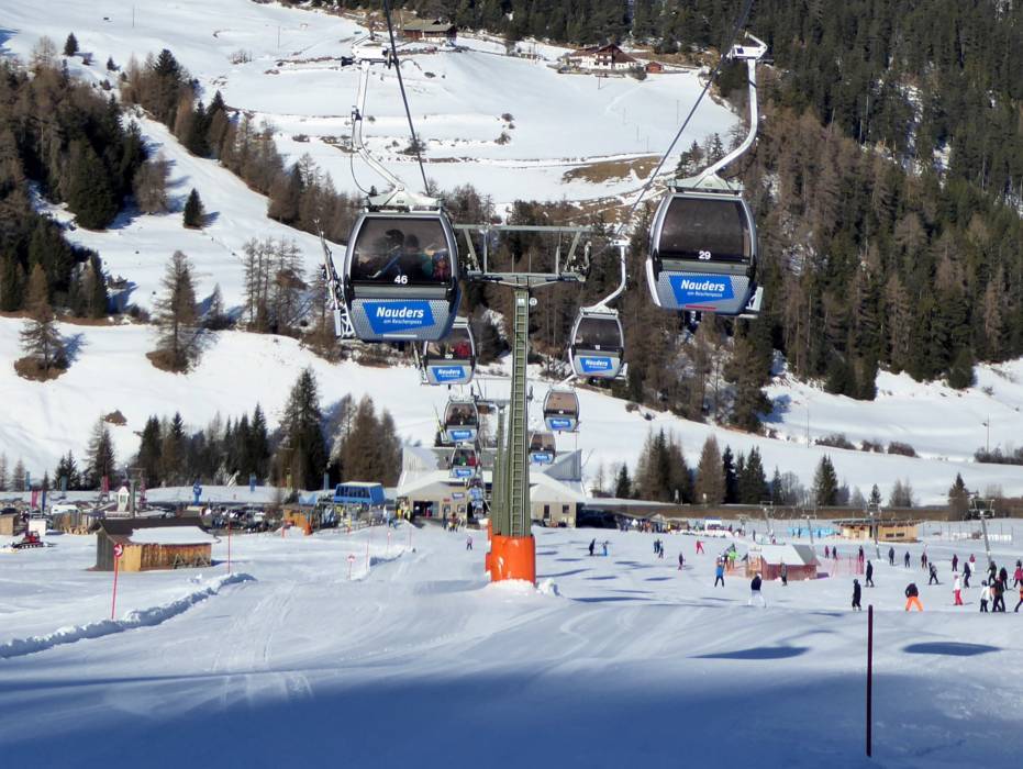 Kurz vor dem Übergang ins mediterrane Vinschgau liegt das Skigebiet Nauders am Reschenpass - Bergkastel. Das Tiroler Wintersportgebiet startet auf über 1400 m und bietet moderne Liftanlagen bis auf 2850 m. Abwärts geht es auf breiten, bestens präparierten Skipisten für genussvolles Skifahren. weiterlesenKurz vor dem Übergang ins mediterrane Vinschgau liegt das Skigebiet Nauders am Reschenpass - Bergkastel. Das Tiroler Wintersportgebiet startet auf über 1400 m und bietet moderne Liftanlagen bis auf 2850 m. Abwärts geht es auf breiten, bestens präparierten Skipisten für genussvolles Skifahren. Ein großes Augenmerk legt das Skigebiet auf die kleinsten Skifahrer, die im Nauderix Kinderland das Skifahren erlernen können. Auch für Anfänger stehen geeignete Übungshänge und Skipisten zur Verfügung. Freerider finden in Nauders am Reschenpass gleich mehrere Skirouten vor. Das neu erbaute, moderne Seilbahncenter Nauders, die Talstation der Bergkastelseilbahn, bietet neben einem Restaurant ein Komfort Skidepot mit zahlreichen Einstellplätzen und einen Sportshop.