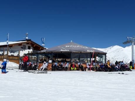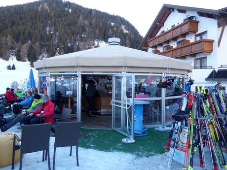 Feierfreudige Skifahrer werden direkt im Skigebiet von zwei Schirmbars empfangen. Die Eine liegt an der Bergstation Bergkastel und die Andere direkt an der Talstation. Auch auf der Stieralm, der Lärchenalm und im Jochelius herrscht bereits nachmittags gute Stimmung und hier kann man auf den Sonnenterrassen den Skitag ausklingen lassen. Wem das nicht reicht, der kann direkt im Dorf Nauders in verschiedenen Bars weiterfeiern.