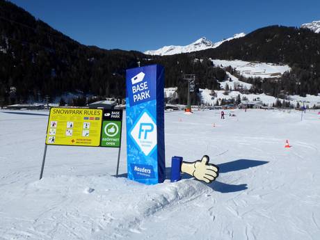 Die Flow Parks Nauders (Base Park, Scenic Park und Pine Park) sind im Skigebiet von Nauders verteilt. Die Parks sind zumeist leicht und voll und ganz auf Familien mit Kindern ausgelegt.