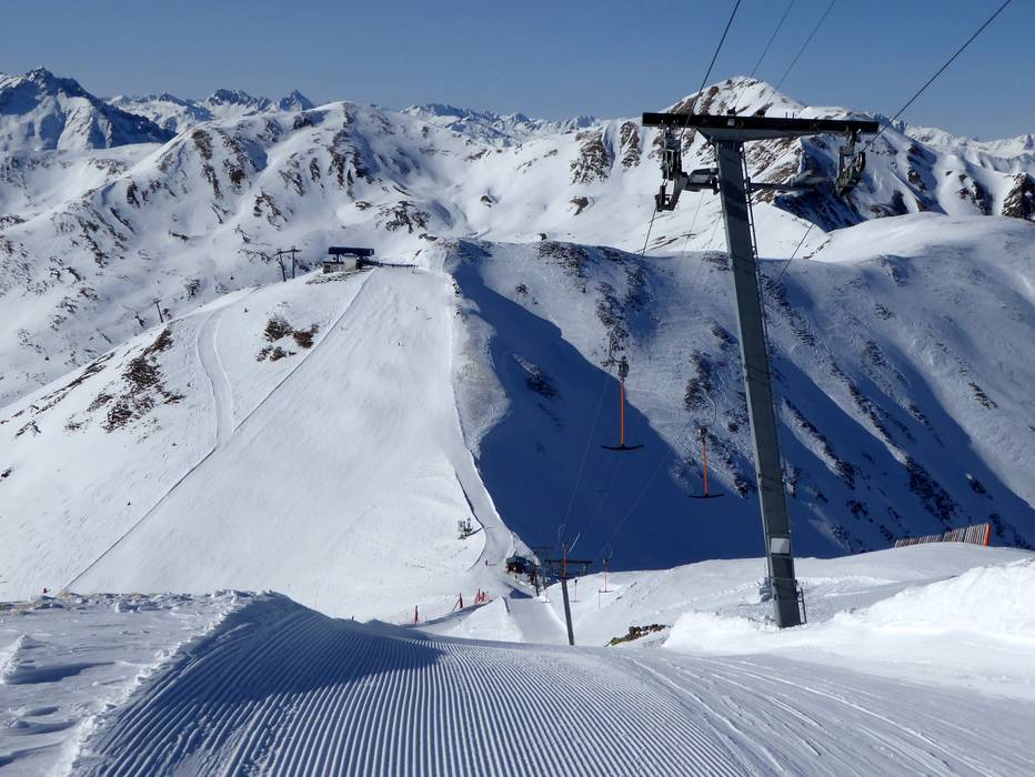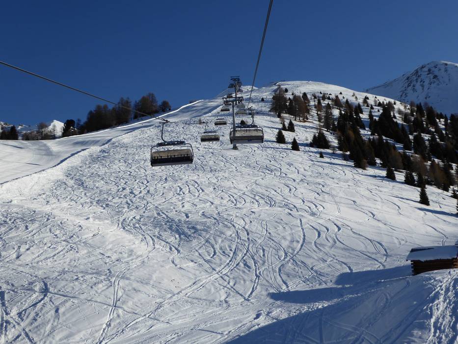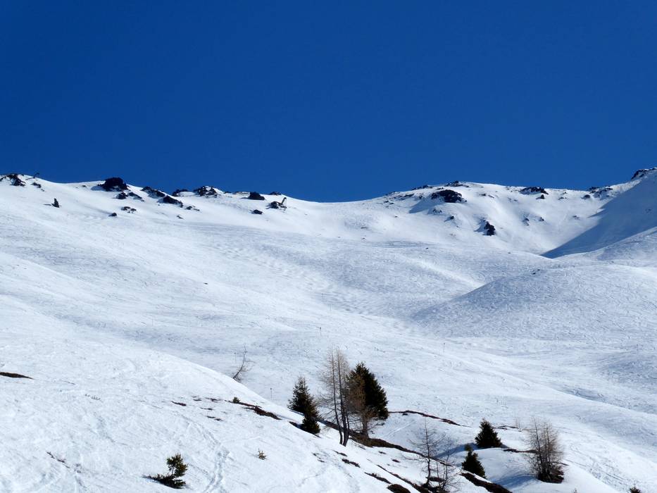 „Die Schwarze“ zweigt von der roten Tscheyeckabfahrt ab und führt über einige steile Buckelhänge.