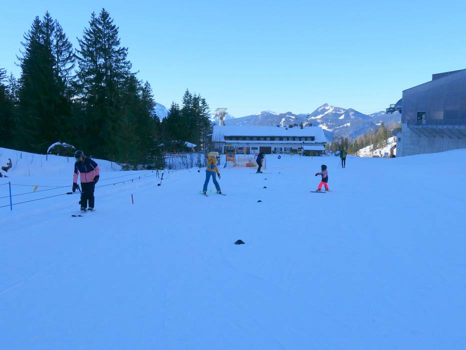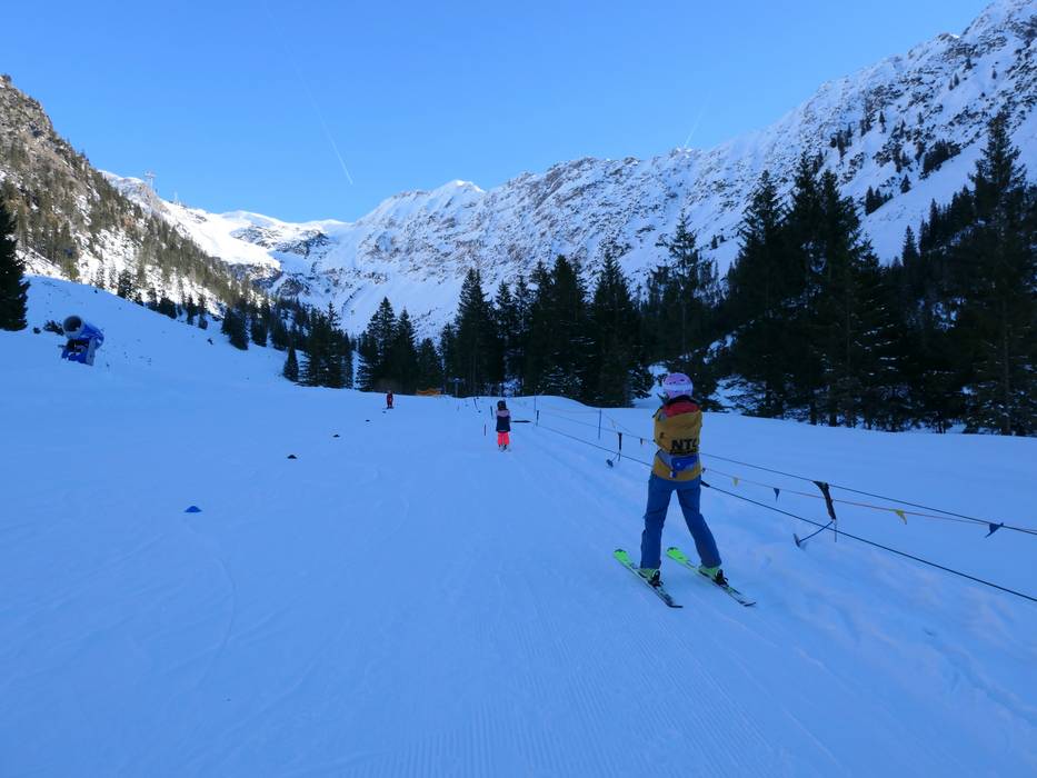 Die NTC Skischule betreibt an der Station Seealpe ein Kinderland. Kinder machen die ersten Schritte am Seillift und schließlich am Schlepplift.