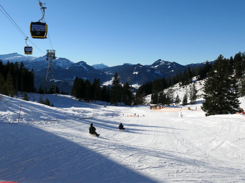 Die 2,5 km lange Natur-Rodelbahn führt von der Station Seealpe hinunter nach Oberstdorf. Die Auffahrt erfolgt komfortabel mit der 10er-Gondelbahn Nebelhorn 1. Rodel können geliehen werden.