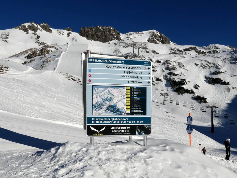 Orientierung (Pistenplan, Informationstafeln, Ausschilderung) und Sicherheit im Skigebiet Nebelhorn – Oberstdorf