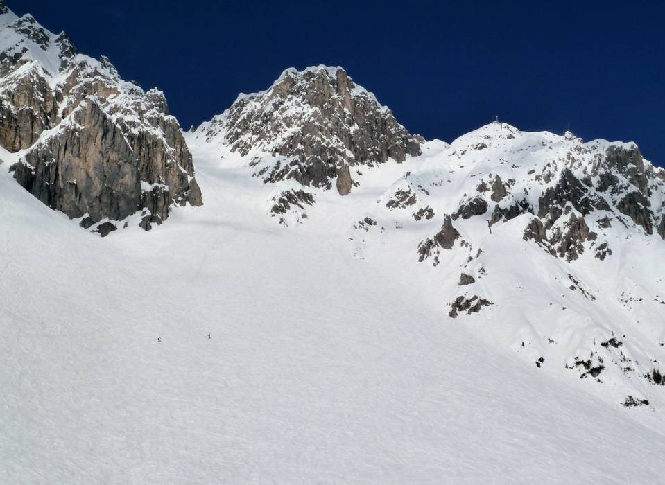 Die legendäre Rinne zählt mit einem Gefälle von 70% zu den steilsten und gefährlichsten Abfahrten Europas.