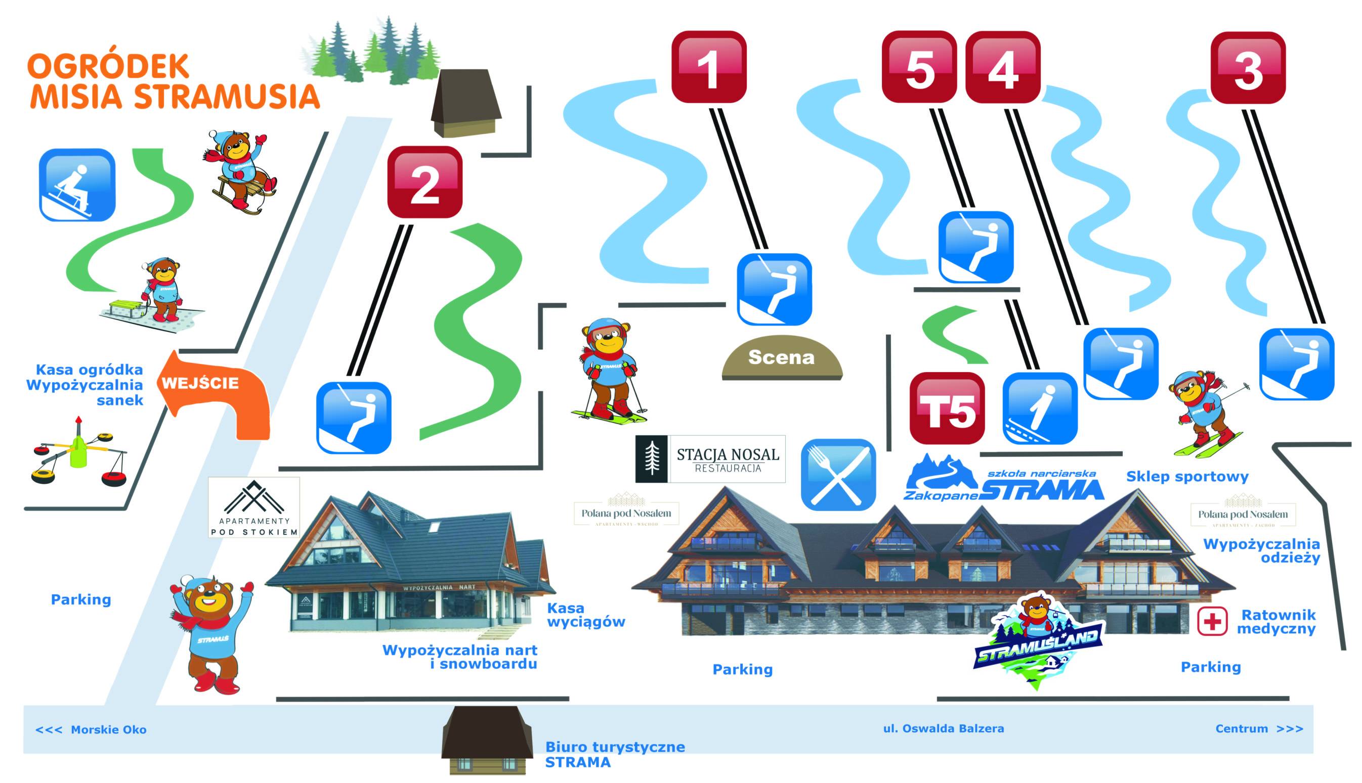 Orientierung (Pistenplan, Informationstafeln, Ausschilderung) und Sicherheit im Skigebiet Nosal – Bystre