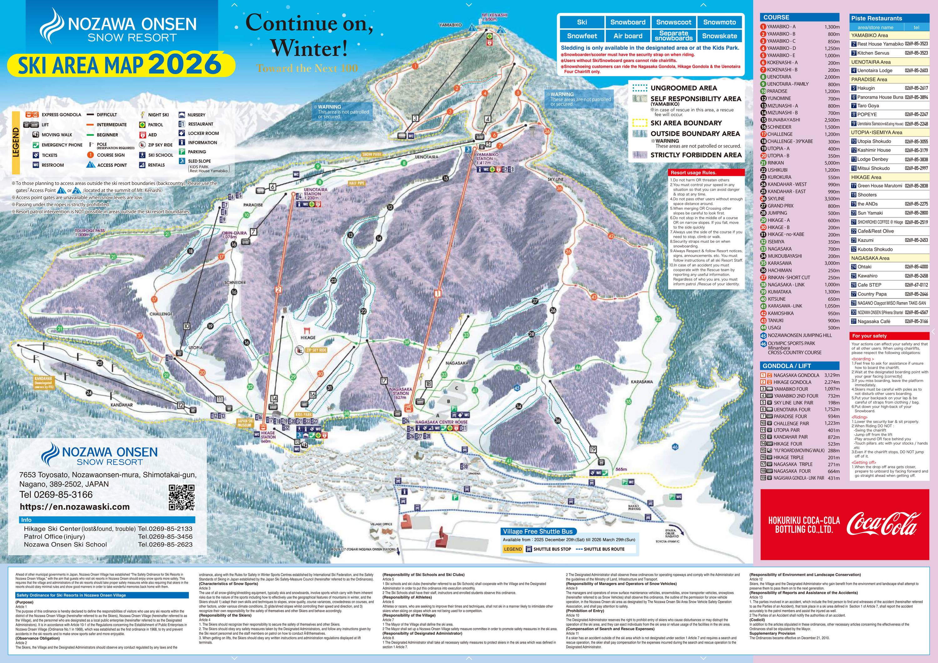 Pistenplan Nozawa Onsen Saison 2025/2026