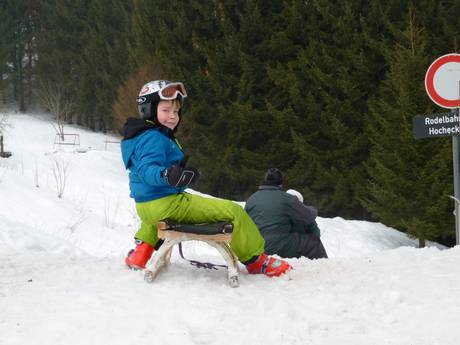 Das Skigebiet ist sehr familienfreundlich, nicht zuletzt durch eine äußerst familienfreundliche Preispolitik. Es gibt eine Kinderbetreuung von der Skischule Hocheck mit eigenem Kinderland oberhalb der Talstation. Ein Übungsgelände mit Seillift und Förderband ist ebenfalls oberhalb der Talstation angesiedelt. Die erste TÜV geprüfte, 3 km lange und beleuchtete Winterrodelbahn ist bei den Familien auch sehr beliebt.