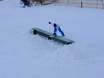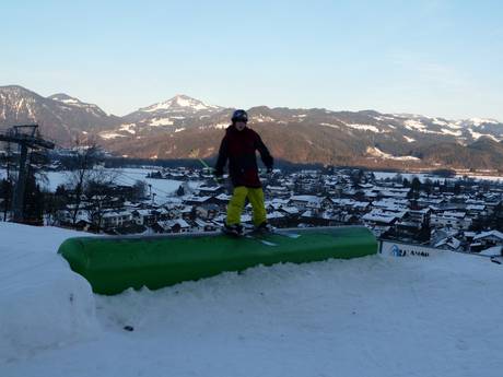 Der Funpark des Skigebiets erstreckt sich entlang des unteren Teils der Talabfahrt und ist dank Flutlichtanlage auch am Abend in Betrieb.