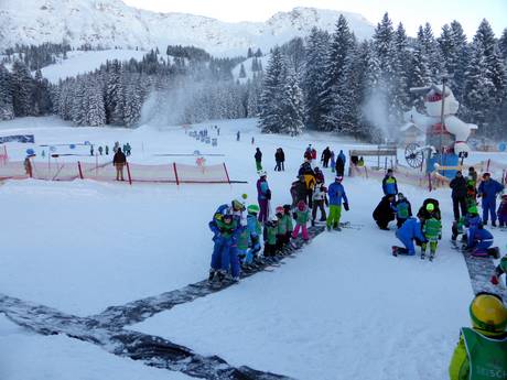 Das Skigebiet ist sehr gut für Kinder und Familien geeignet. An der Talstation der Iselerbahn befindet sich das Schneekinderland der Skischule Ostrachtal, ein großes und sehr liebevoll gestaltetes Übungsgelände. An der Schwandenbahn existiert ein weiteres gut ausgestattetes Kinderland der Skischule Iseler. Die Skischulen Lanig und SnowAcademy betreiben auch Kinderländer. Die Pisten an der Schwandenbahn und am Idealhanglift sind leicht und ein ideales Übungsgelände. Die neue 8er-Sesselbahn Schwanden hat eine Kindersicherung, genau wie die neuen Sesselbahnen Grenzwies und Wiedhag. Auch die Übersichtlichkeit des Skigebiets ist ein Trumpf für Familien. Mit dem Oberjoch Familux Resort liegt ein führendes Hotel für Familien am Skigebiet.