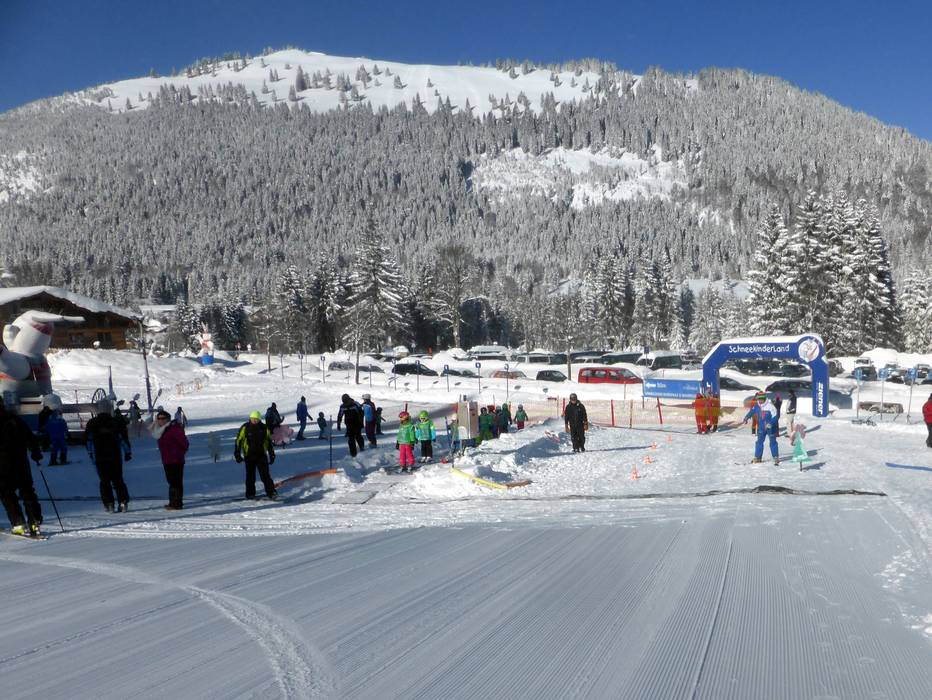 Das Schneekinderland der Skischule Ostrachtal ist ein mit viel Liebe gestaltetes Übungsgelände. Spielerisch und mit viel Abwechslung können auf über 20.000 m² die Kleinen das Ski- und Snowboardfahren erlernen. Das sehr gut ausgestattet Kinderland bietet mehrere Förderbänder (Zauberteppiche) und Seillifte mit verschiedenen Geländeformen. Weitere Highlights sind die Schanzen- und Slalomstrecke, eine Zone mit Steilwandkurven, der Märchenwald mit Tieren, das Maskottchen, das Schneekarussell und ein Regenbogenwald. Das Skischulteam ist sehr engagiert. Toiletten und die Kinderspielhütte (Wärmestube) sind direkt am Gelände. Mit dem Kinderlandexpress werden die fortgeschrittenen Kinder zur Schwandenbahn (8er-Sesselbahn mit Wetterschutzhaube und Kindersicherung) gebracht. An diesem Anfängergelände können sich die Kinder ideal steigern. Für Skikursteilnehmer und Bad Hindelang Plus-Inhaber ist das Schneekinderland kostenfrei, sonst für einen geringen Betrag auch selbständig nutzbar. Das Schneekinderland ist im Winter täglich geöffnet.