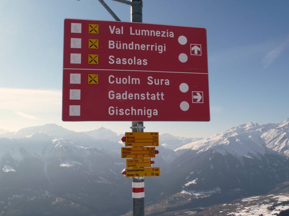 Das Skigebiet Obersaxen-Mundaun-Val Lumnezia bietet abwechslungsreich angelegte, bestens präparierte Pisten zum Skifahren und Snowboarden. Die Skischaukel erstreckt sich über gleich mehrere Gipfel zwischen Obersaxen Mundaun und Lumnezia in der Val Lumnezia. Die Rundsicht im Skigebiet reicht bis weiterlesenDas Skigebiet Obersaxen-Mundaun-Val Lumnezia bietet abwechslungsreich angelegte, bestens präparierte Pisten zum Skifahren und Snowboarden. Die Skischaukel erstreckt sich über gleich mehrere Gipfel zwischen Obersaxen Mundaun und Lumnezia in der Val Lumnezia. Die Rundsicht im Skigebiet reicht bis hin zu den fernen Walliser und Österreicher Alpen. In den Pausen vom Skifahren laden gemütliche Berggasthäuser und lässige Schneebars im Wintersportgebiet mit ihren Sonnenterrassen und Bündner Spezialitäten zum Verweilen ein.