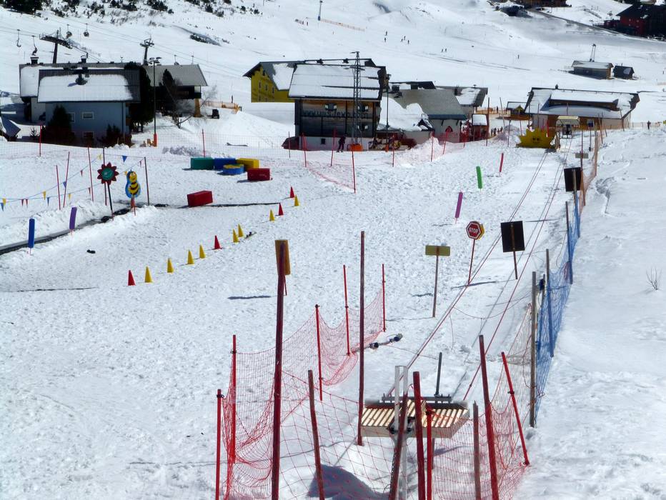 An der Talstation der Edelweissbahn befindet sich das Übungsgelände der Skischule Krallinger mit Förderband und Seillift.