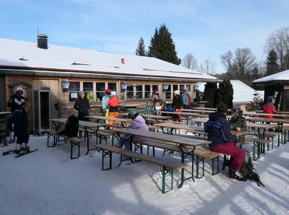 Die gemütliche Oedbergalm bietet durchgehend warme Küche und serviert in Selbstbedienung bodenständige, bayerische Spezialitäten. Von der Sonnenterrasse aus lässt sich das Treiben auf der Piste sehr gut beobachten.