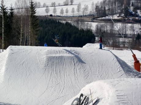 Der Oslo Vinterpark Tryvann hat in Sachen Snowparks und Halfpipe einiges zu bieten. Es gibt neben einer Superpipe auch eine normale Halfpipe und die drei Snowparks lassen keine Wünsche offen.