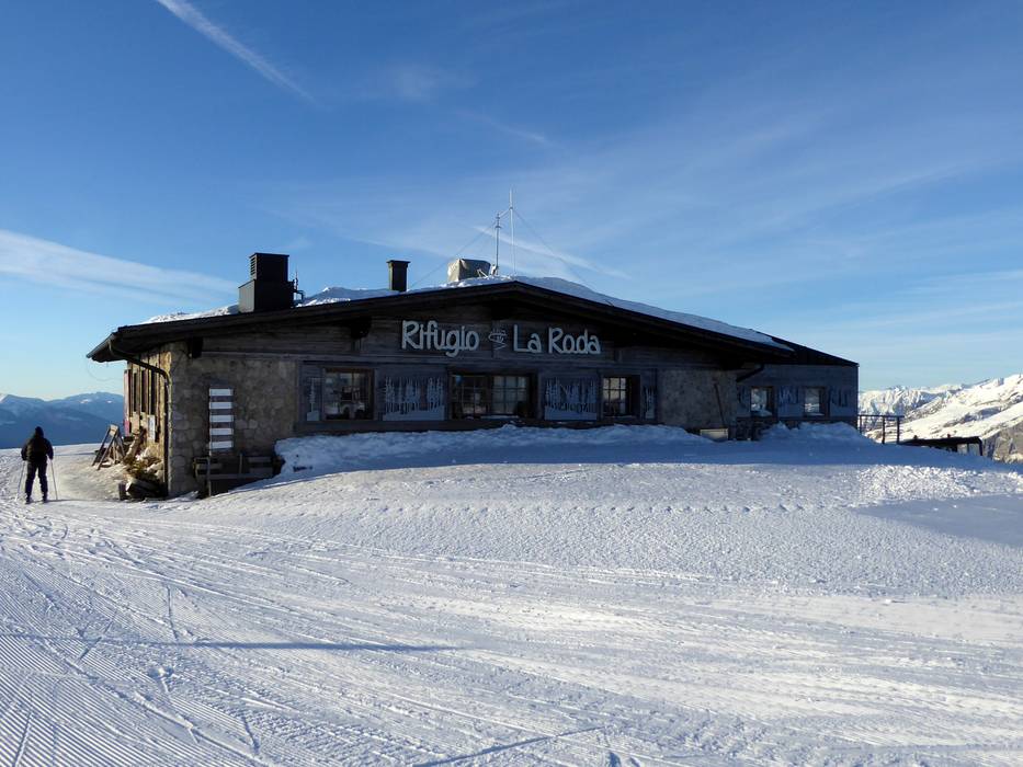 Das Dosso Larici ist eine urige Berghütte mit Kachelofen und gemütlicher Bar. Hier trifft man sich schon am Vormittag, um auf den schönen Skitag anzustoßen. Von der Sonnenterrasse hat man einen herrlichen Blick ins Tal.