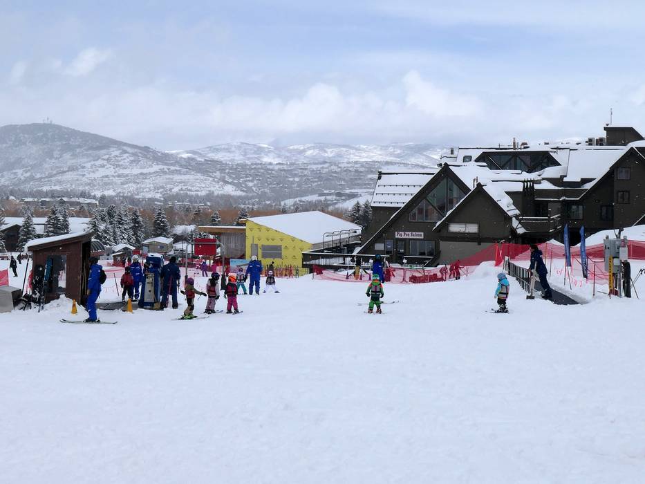Kinder können an den Zauberteppichen im Park City Mountain Village ideal üben. Skikurse werden hier auch angeboten.