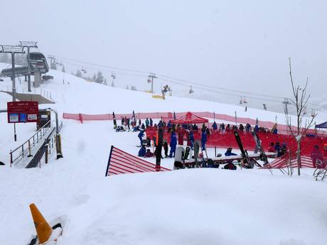 An der Bergstation der Red Pine Gondola befindet sich ein Skischulgelände mit Zauberteppich.