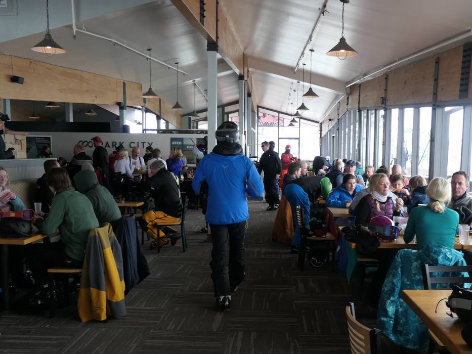 Das Summit House ist ein großes Selbstbedienungsrestaurant mitten im Skigebiet.