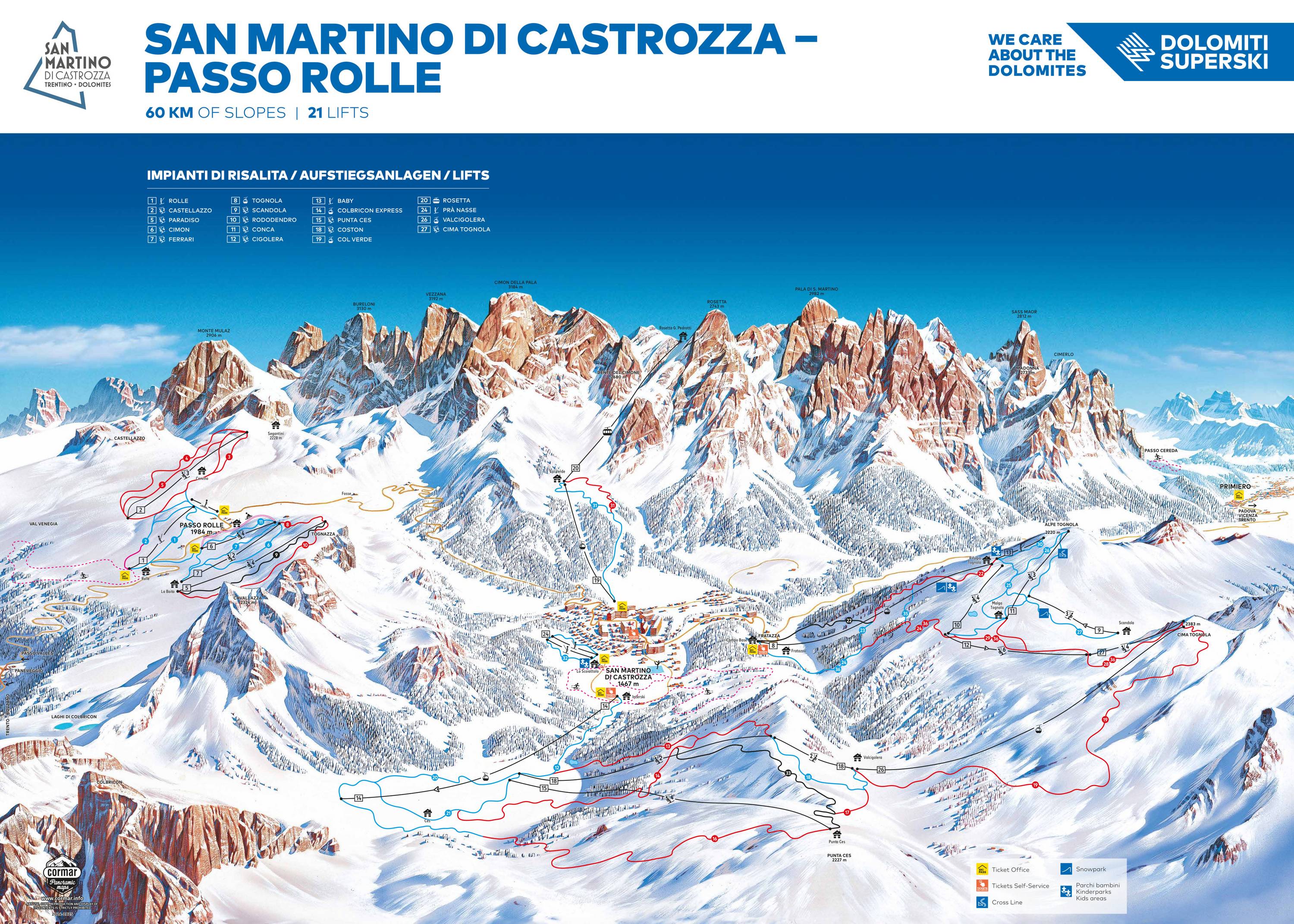 Pistenplan San Martino di Castrozza & Passo Rolle Saison 2025/2026