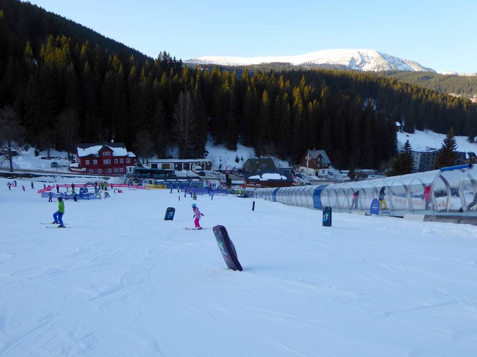 Das Skigebiet Pec pod Sněžkou ist familien- und kinderfreundlich. Direkt an der Talstation gibt es den Live Park Javor mit Förderbändern und lustigen Figuren. Im Skigebiet selber warten eine Funslope und breite Pisten.