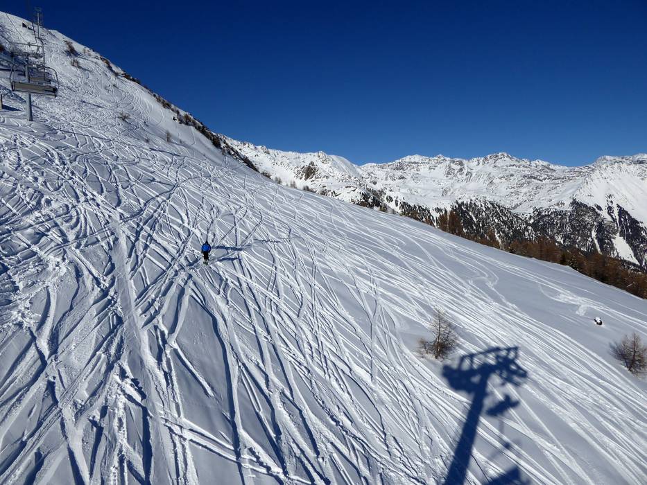 Im Skigebiet von Pejo gibt es eine schwere Abfahrt von Tarlenta zur Talstation. Die Piste von Pejo 3000 durch das Val della Mite und weiter bis zur Talstation ist für Könner ebenfalls interessant. Hier braucht man gute Kondition, denn es geht über 8 Kilometer und 1600 Höhenmeter talwärts. Im Val della Mite ist das Verlassen der Pisten aufgrund von Umweltschutz und Lawinengefahr verboten. Am Cima Vioz kann man einen Abstecher in den Tiefschnee wagen.