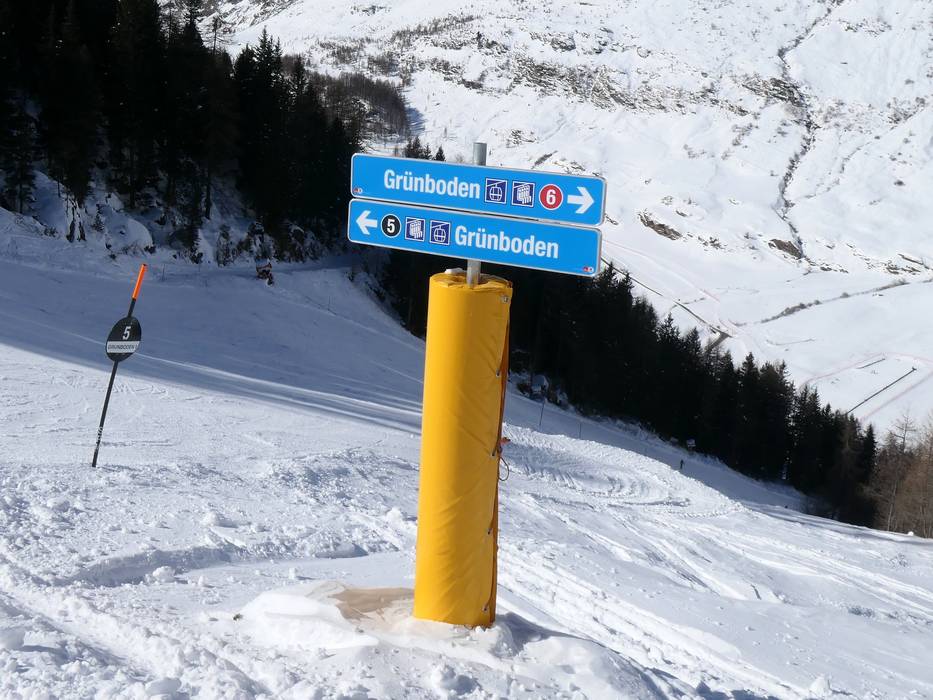 Ein großer Pistenplan ist an der Tal- und Bergstation des Grünbodenexpresses angebracht. Weitere Orientierungshilfen befinden sich auf den Pisten. Die Pisten sind durch Fangnetze sehr gut gesichert. Auf Kreuzungen wird sehr gut hingewiesen. Die aktuelle Lawinenwarnstufe wird angezeigt.