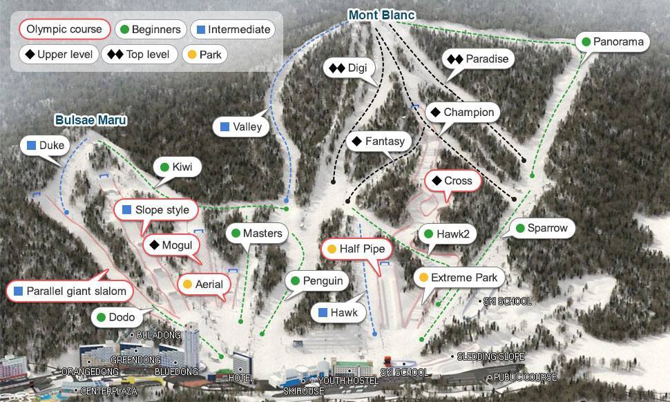 Bongpyeong-myeon (8 km), Pyeongchang (39 km) Orte am Skigebiet