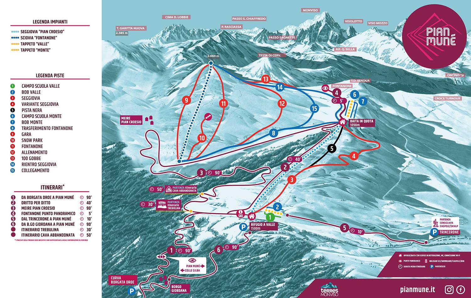 Pistenplan Pian Munè – Paesana Saison 2025/2026