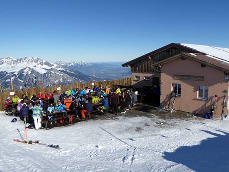 Im ganzen Skigebiet sind urige und moderne Einkehrmöglichkeiten vorhanden. Man findet ein vielfältiges kulinarisches Angebot vor. Das faszinierende Panorama auf die Alpen und ins Rheintal ist inklusive. Highlight ist eine Abendfahrt mit der Fonduegondel in Bad Ragaz.
