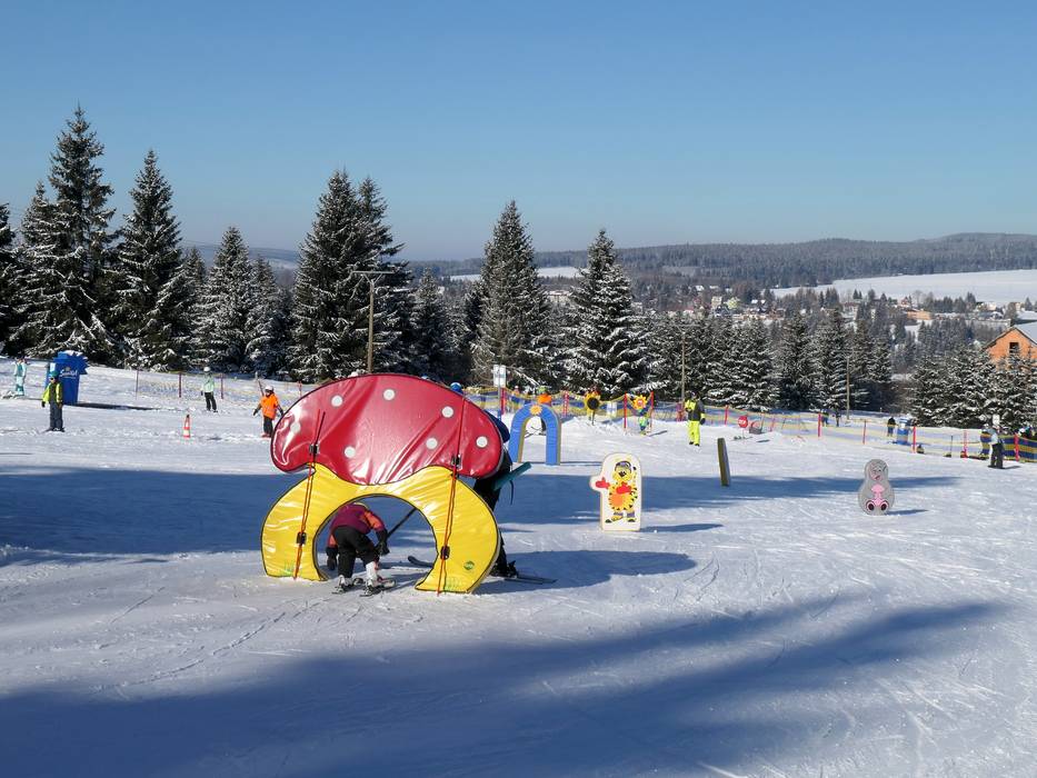 Familien freuen sich über eines der größten und modernsten Kinderländer in Tschechien. Mehrere Pisten sind leicht und für die ganze Familie geeignet.