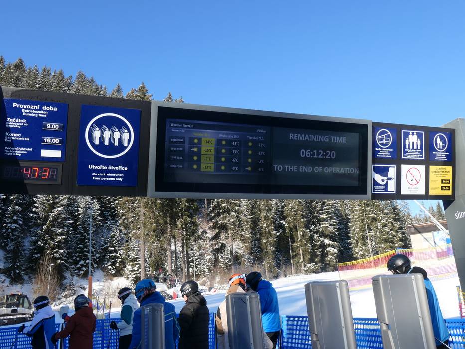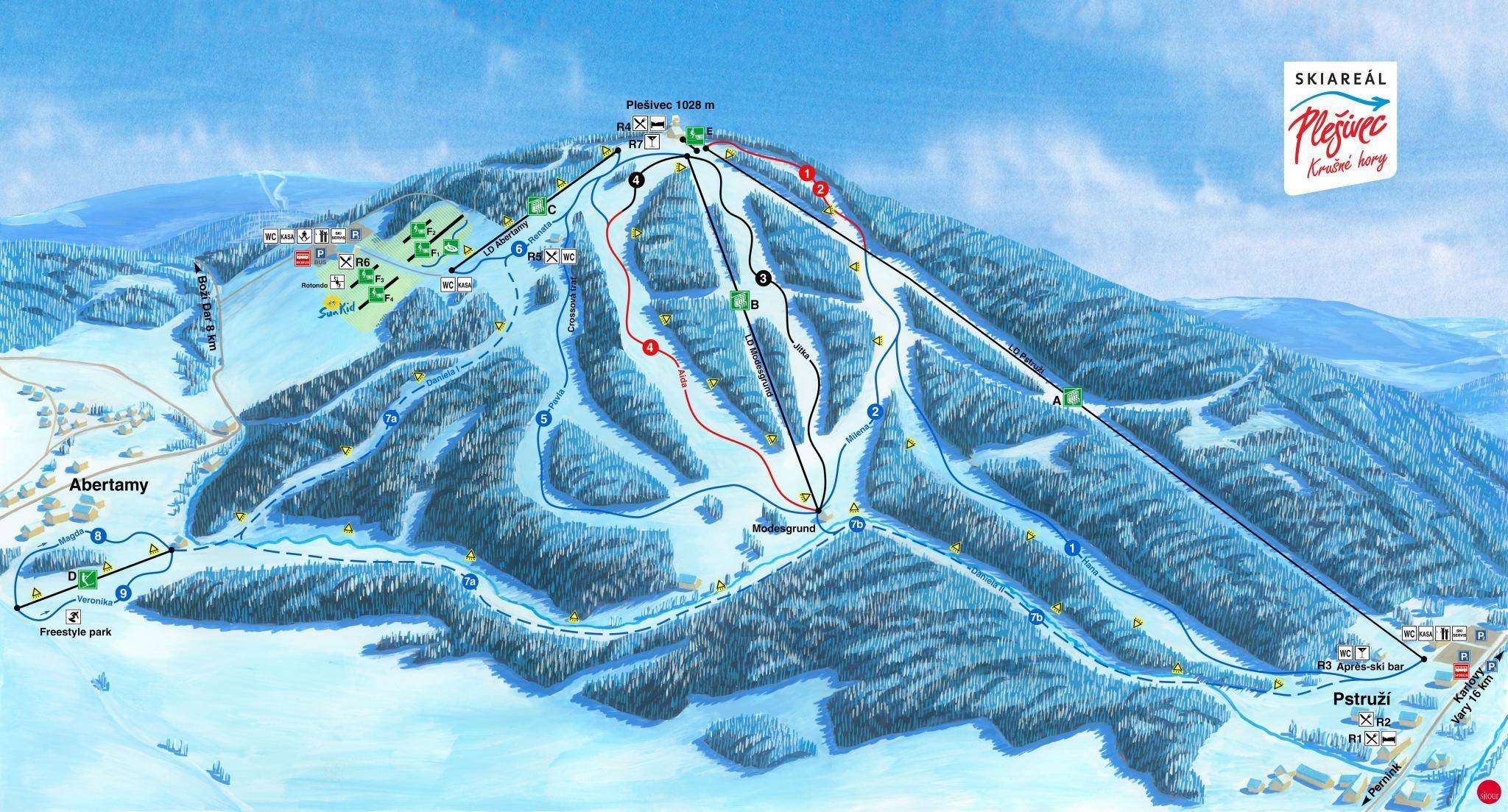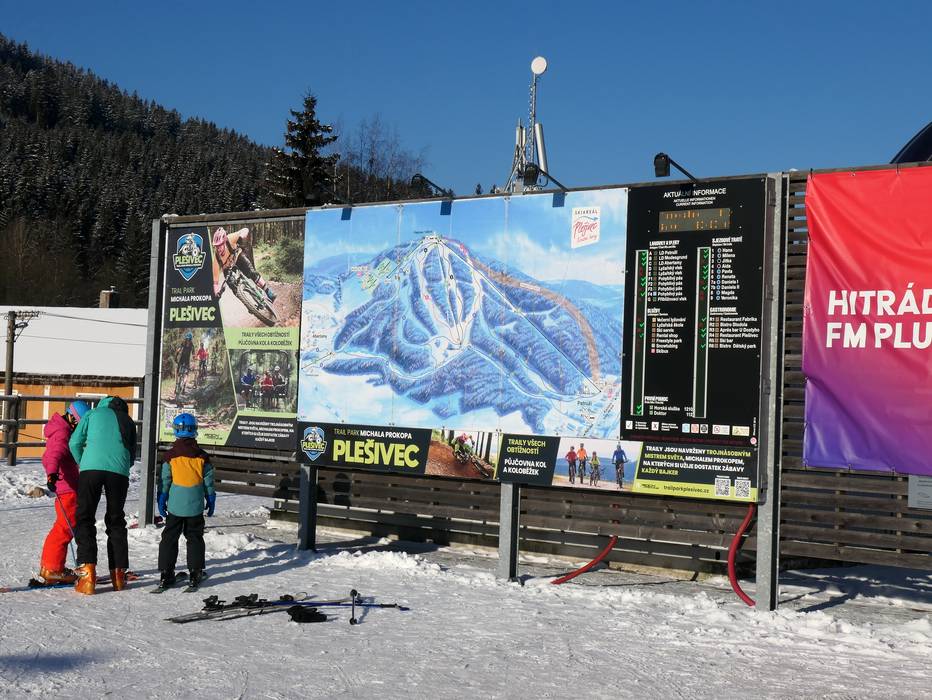 Orientierung (Pistenplan, Informationstafeln, Ausschilderung) und Sicherheit im Skigebiet Pleßberg (Plešivec) – Abertamy