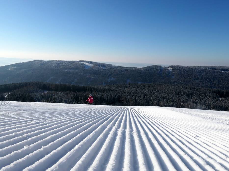 Täglich werden die Pisten im Skigebiet Pleßberg (Plešivec) mit viel Engagement präpariert.