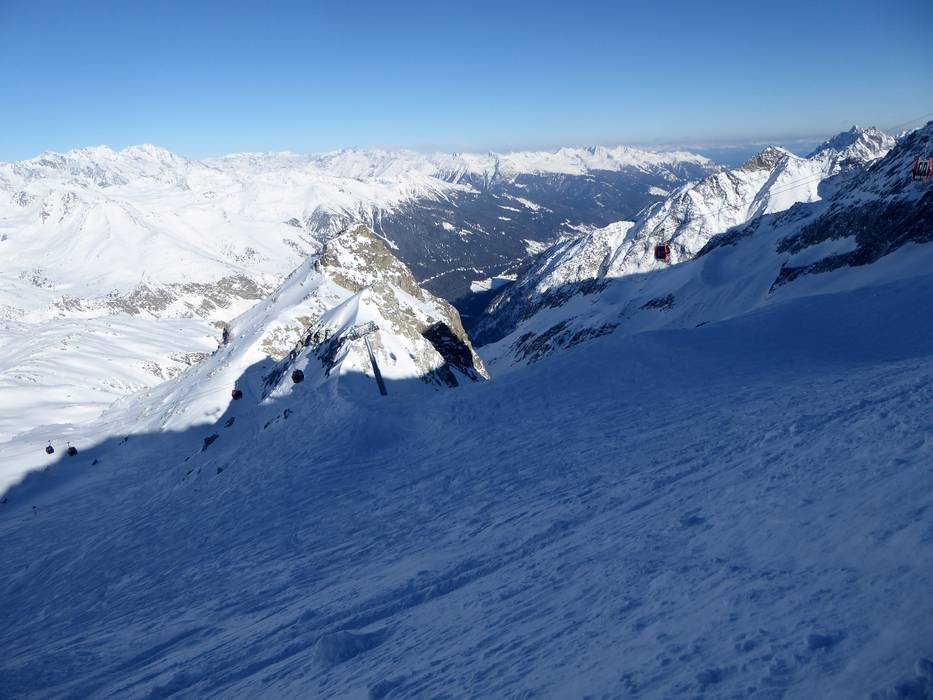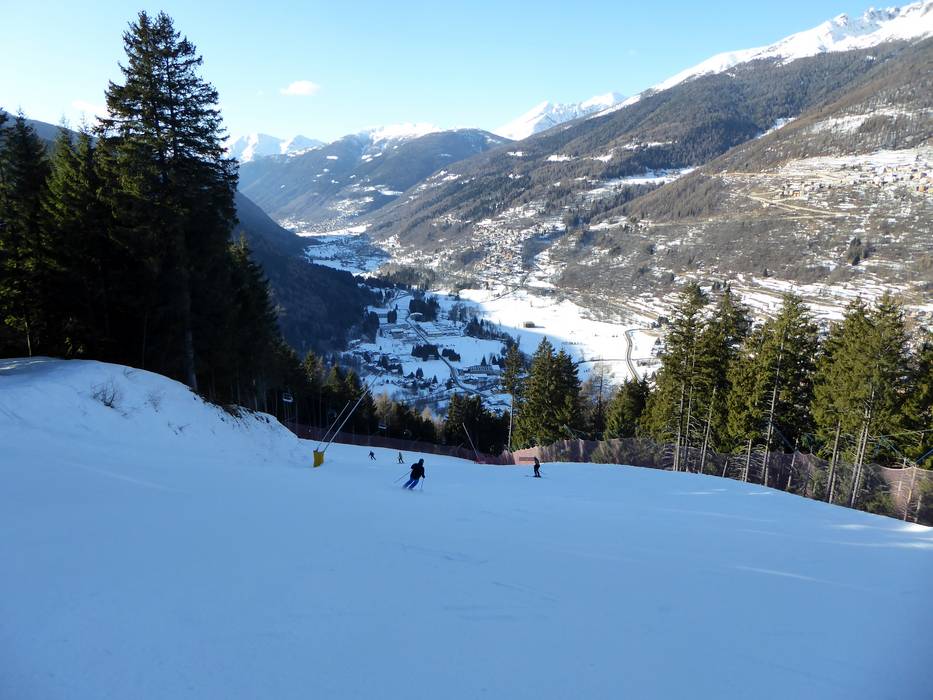 Die schwarze Piste führt vom Passo Paradiso steil ins Tal. Sie wird von der Gondelbahn Paradiso bedient.