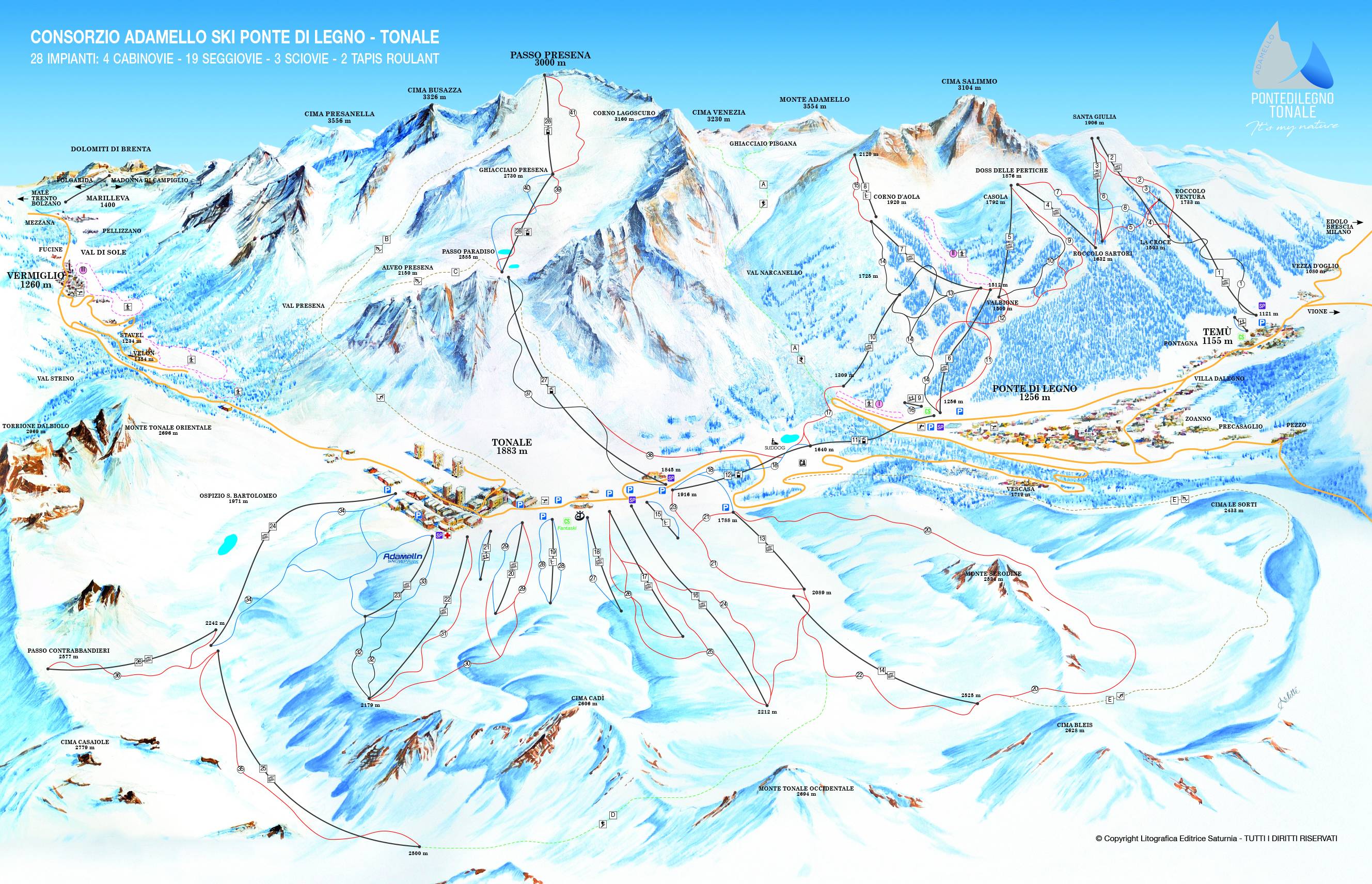 Pistenplan Ponte di Legno/Tonale/Presena/Temù (Adamello Ski) Saison 2019/2020