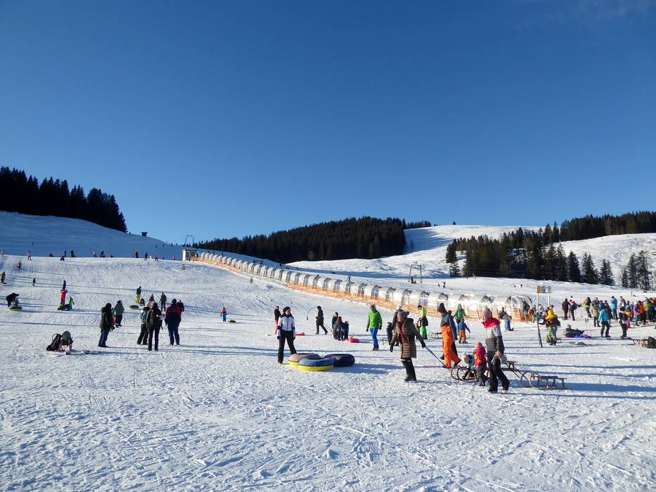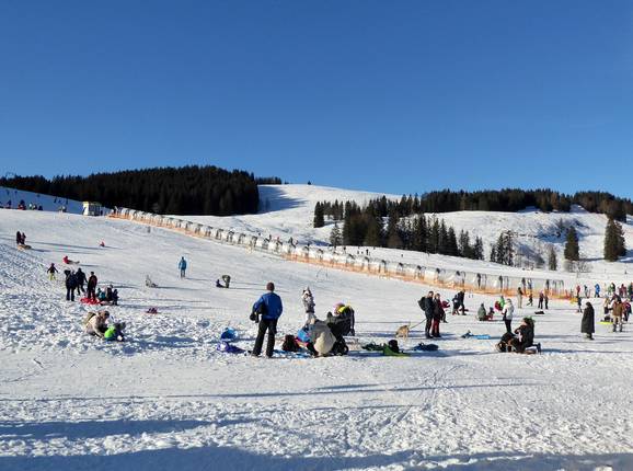 Der überdachte Zauberteppich ist ein Paradies für Kinder und Familien. Hier können die Kleinen die ersten Schwünge üben oder eine Rodelabfahrt wagen.