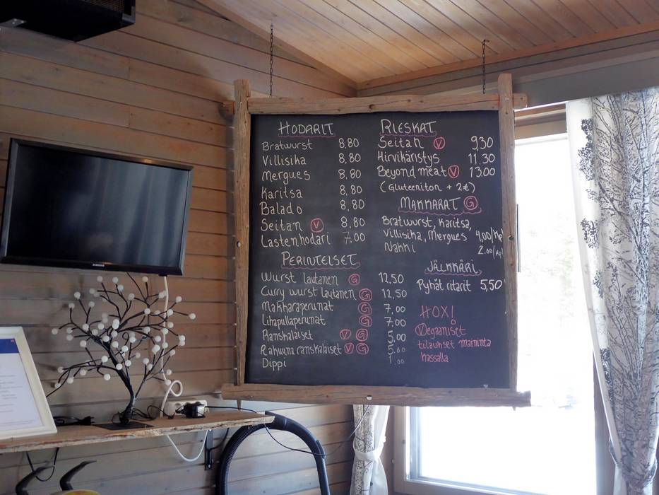 Im Restaurant PyhäWurst erhält man eine große Auswahl an verschiedenen Würsten. An kalten Tagen wärmt der Kamin und bei Sonnenschein lockt die Terrasse.