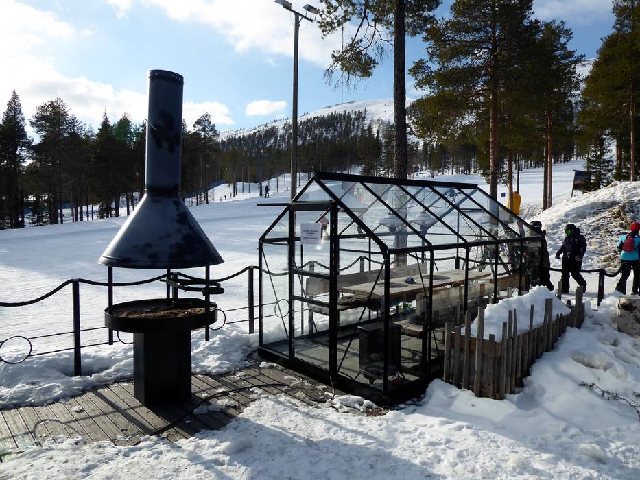 Das Skigebiet Pyhä bietet eine sehr gute Auswahl an Einkehrmöglichkeiten. Sogar ganz oben auf dem Gipfel kann man in einer urigen Hütte einkehren. Im Skigebiet findet man auch offene Feuerstellen, wo man seine eigenen Würstel grillen kann. Wärmestuben runden das Angebot ab.