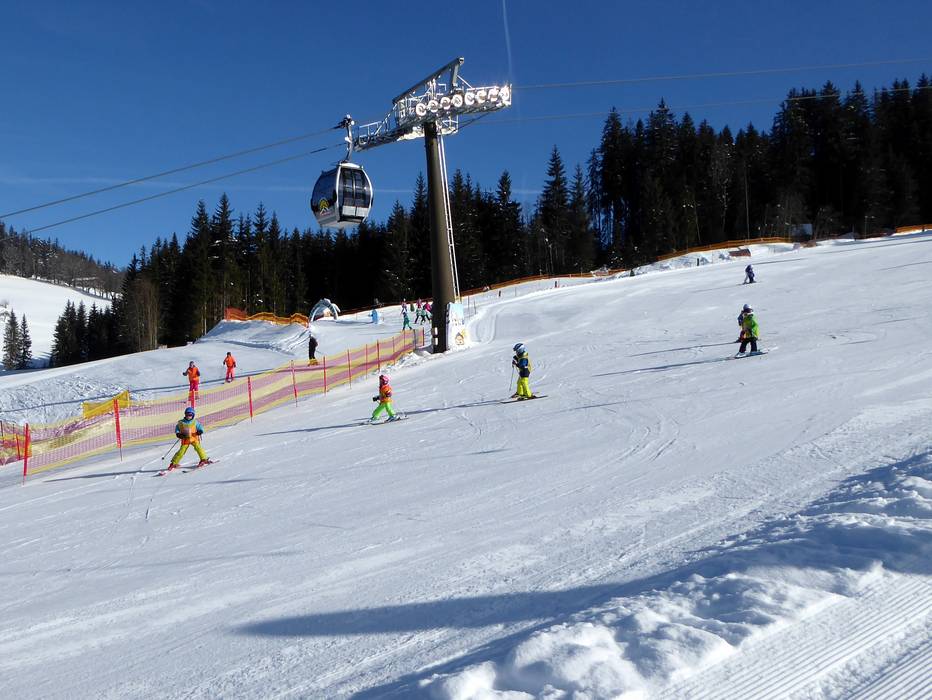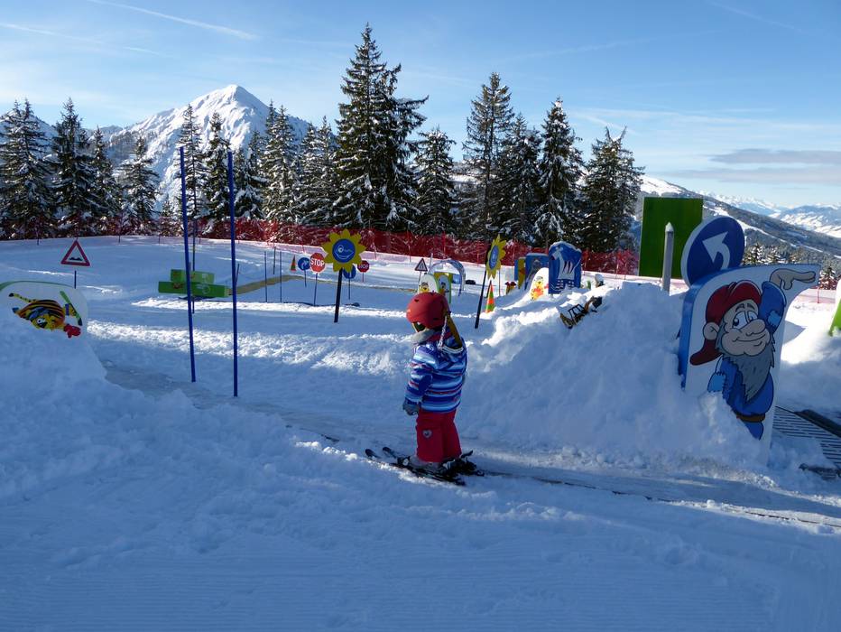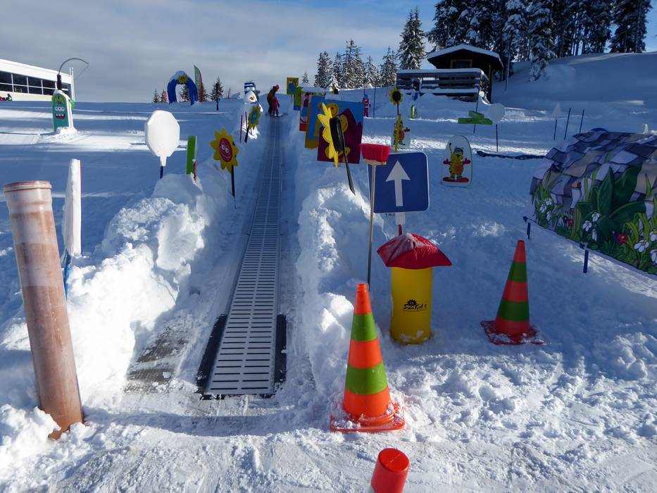 Das Kinderland befindet sich an der Bergstation der Kemahdhöhe. Ein Zauberteppich mit Abenteuer Parcours bringt die Kinder spielerisch zum Skifahren.
