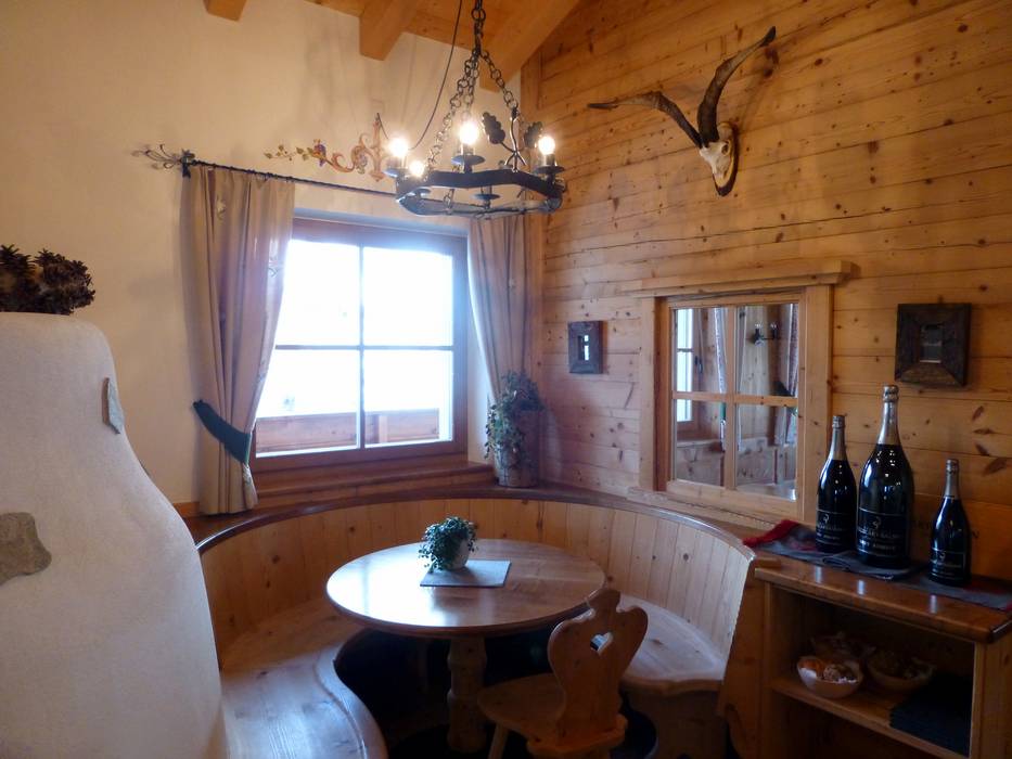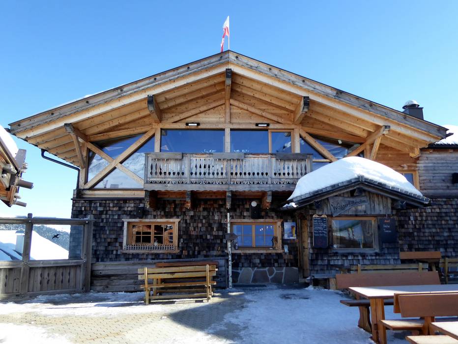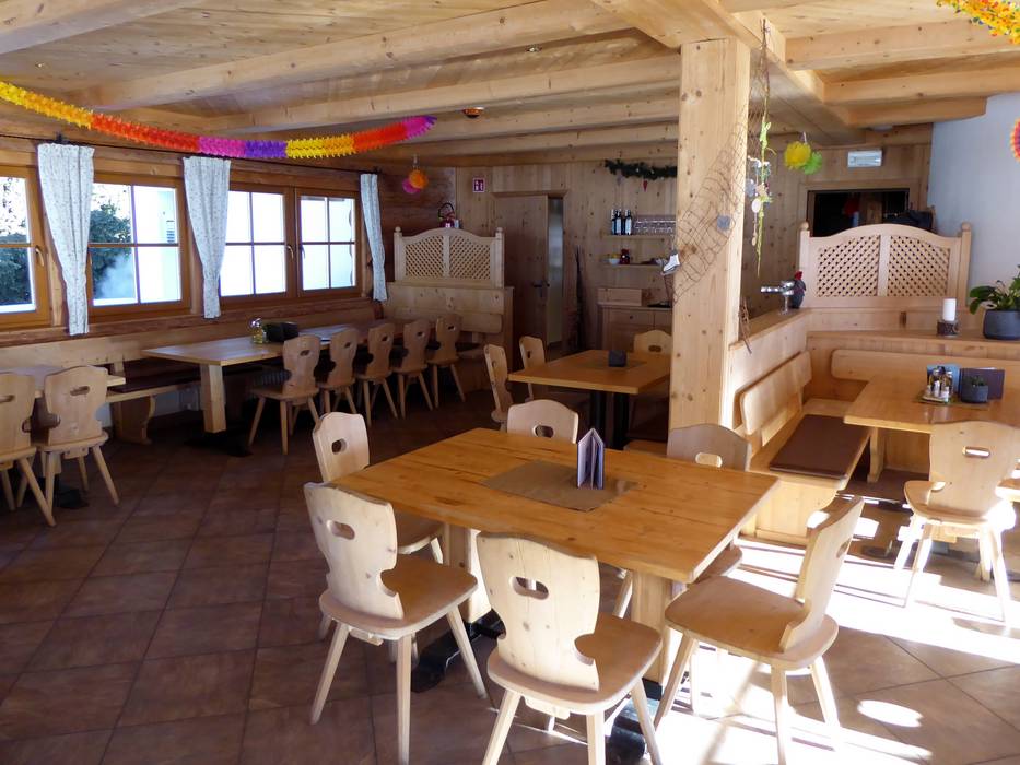 Die urige und gemütliche Hütte mit Sonnenterrasse bietet typische Südtiroler Spezialitäten. In den Stuben kann man es schon mal etwas länger bei der Mittagspause aushalten.