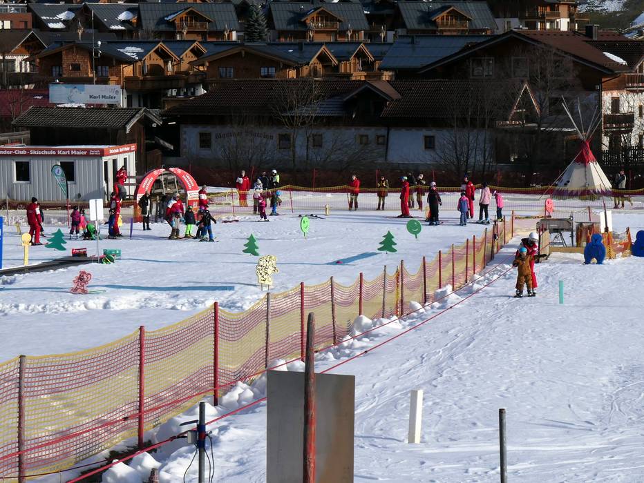 Das Kindergelände an der Talstation der Hochalmbahn in Rauris hat einen Zauberteppich und einen kleinen Übungslift. Kinder können bei den engagierten Skilehrern optimal üben.