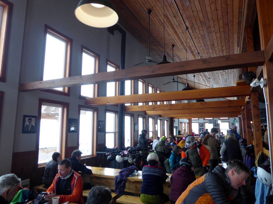 Die urige Paradise Lodge bietet gutes Kanadisches Essen und eine große Getränkeauswahl. Hier kann man sich an kalten Tagen am Berg stärken. Bei schönem Wetter lockt die Sonnenterrasse.