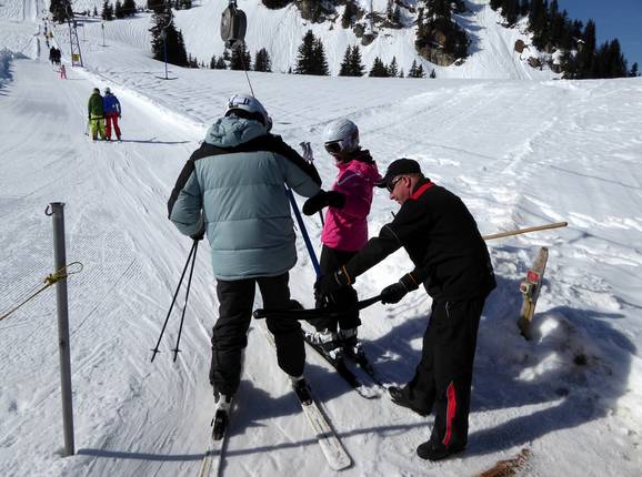 Das Personal an den Liften und Bahnen ist sehr freundlich, präsent und aufmerksam. An den Schleppliften wird einem der Bügel gereicht. Kindern wird grundsätzlich beim Einsteigen geholfen und Starthilfe geleistet.