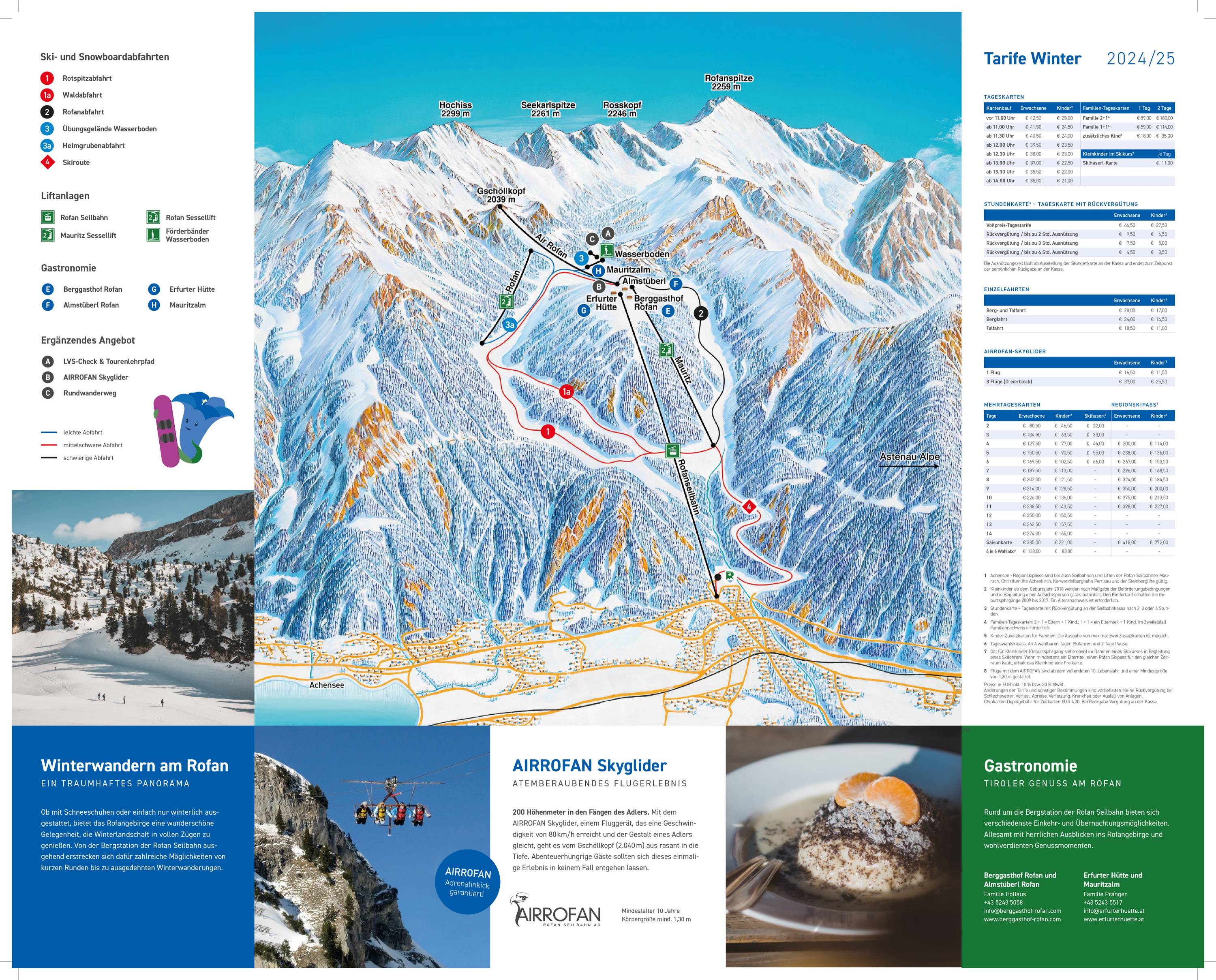 An der Talstation der Rofanseilbahn ist eine sehr umfassende Informationstafel angebracht. Der Pistenplan zum Mitnehmen könnte das Skigebiet etwas genauer zeigen.