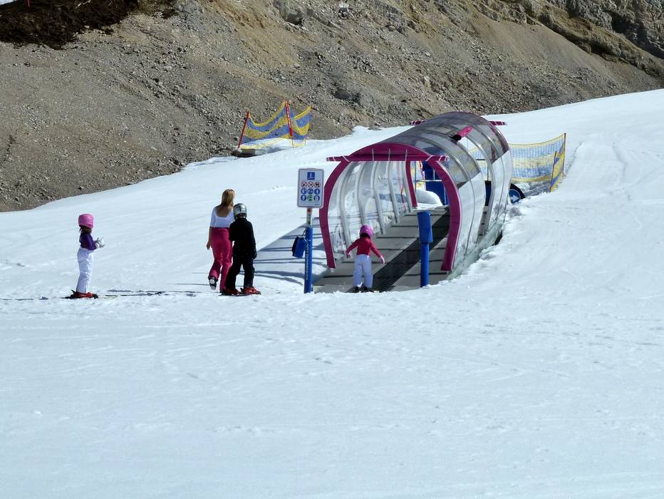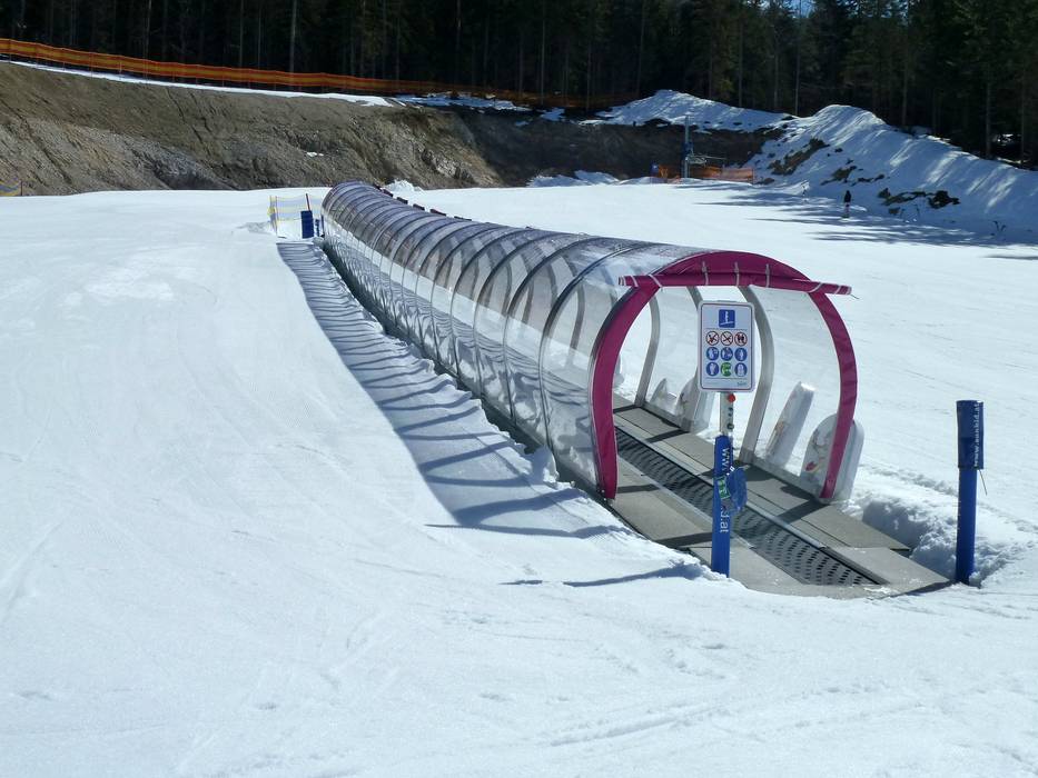 Sportis Kinderland bietet Förderbänder verschiedener Länge und einen Teller-Seillift. Der abgegrenzte Bereich liegt an der Talstation neben der Schialm und ist über eine Fußgängerbrücke erreichbar. Das Gelände ist ideal für die ersten Schritte im Schnee.