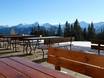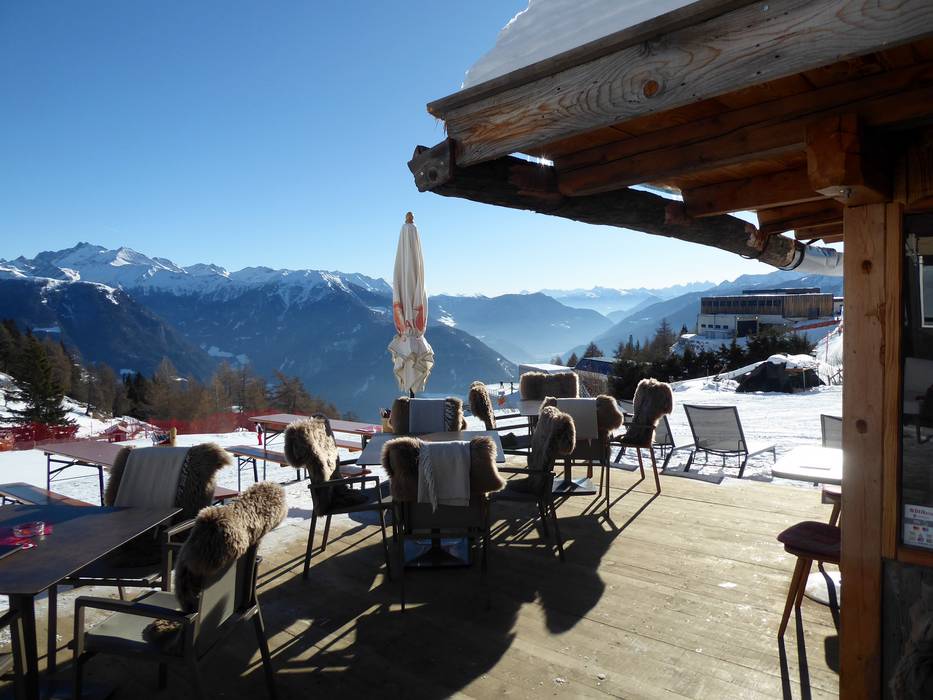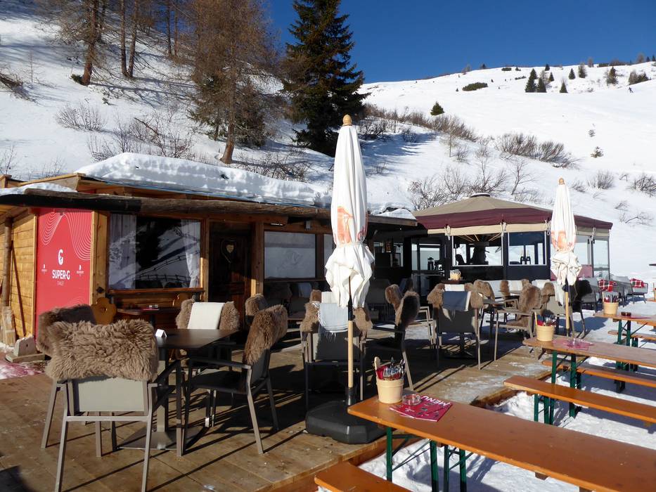 Das zur Saison 2022/23 neu eröffnete Chalet Super-G bietet eine Sonnenterrasse mit Schirmbar und herrlicher Aussicht. In der gemütlichen Stube werden sehr gute Speisen serviert.