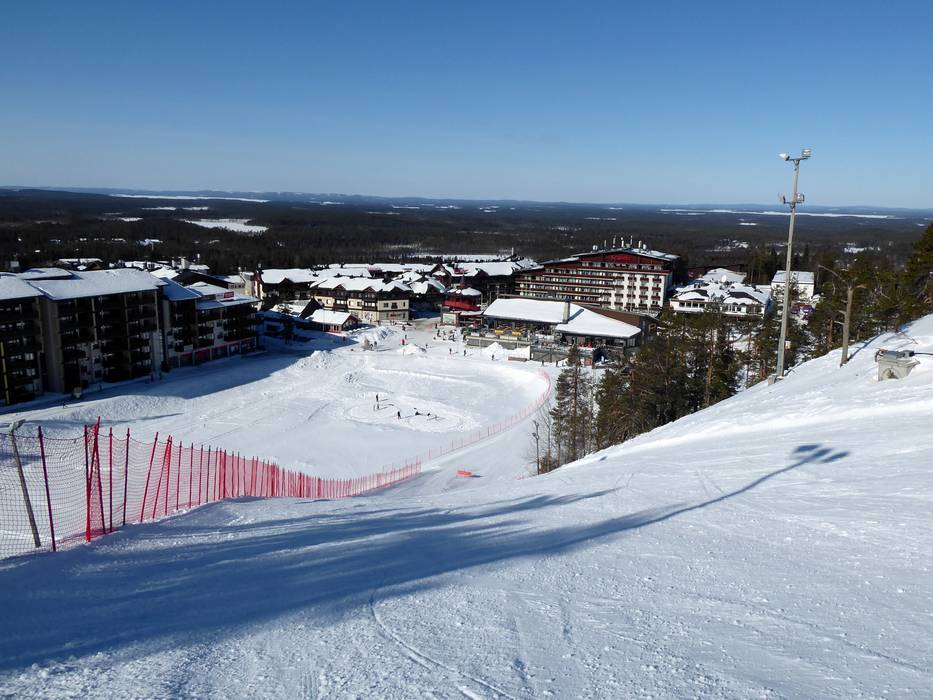 Es gibt nur wenige schwere Abfahrten im Skigebiet Ruka. Die knackigen Pisten führen hinunter nach Pessari und zum Ruka Village. Die schwere FIS Abfahrt wertet das Angebot für Könner enorm auf.